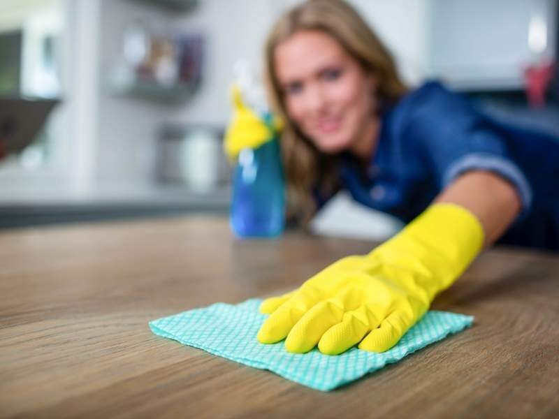 •Wiping and disinfecting all surfaces, including kitchen counters and bathroom sinks.